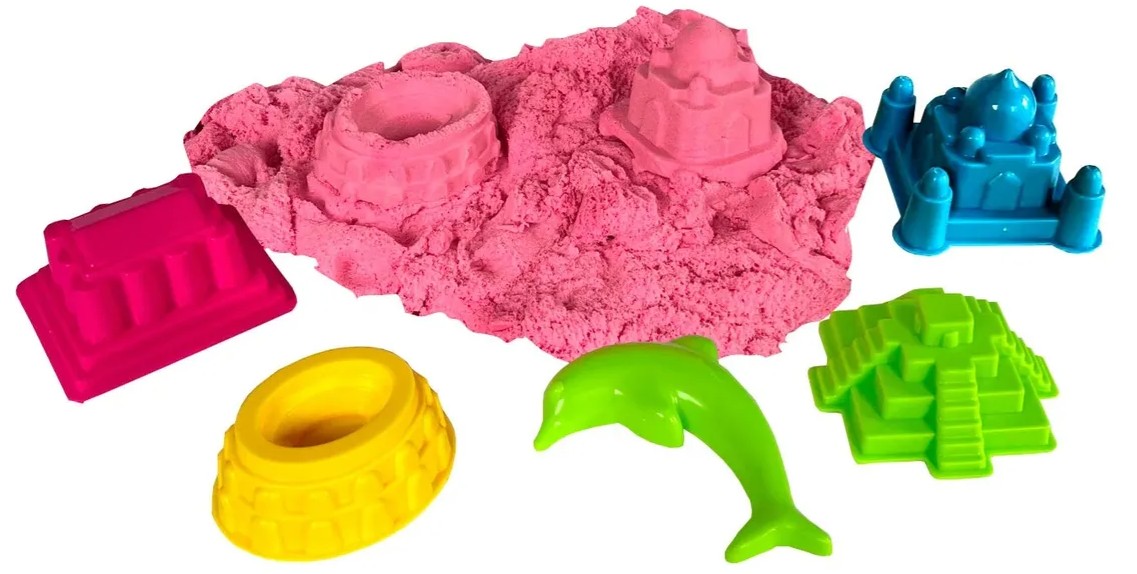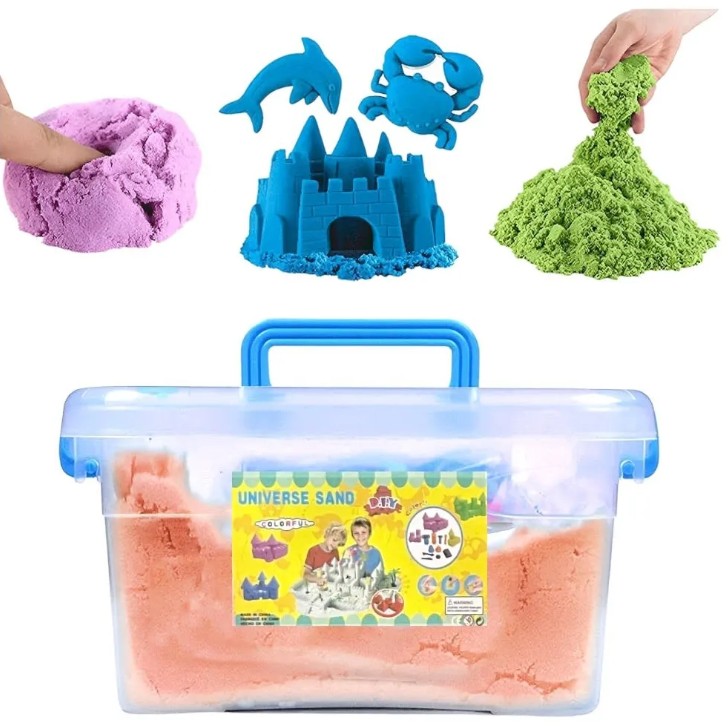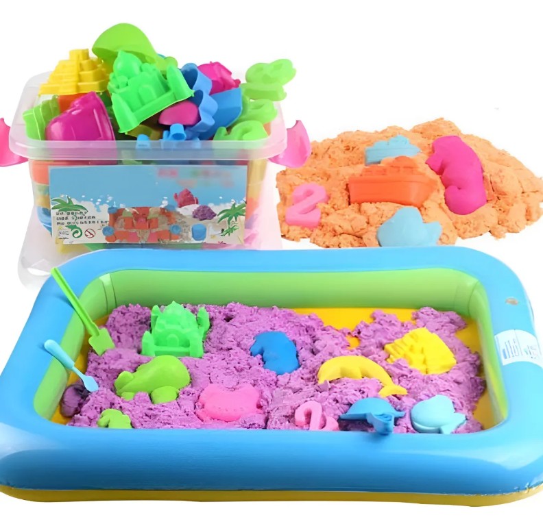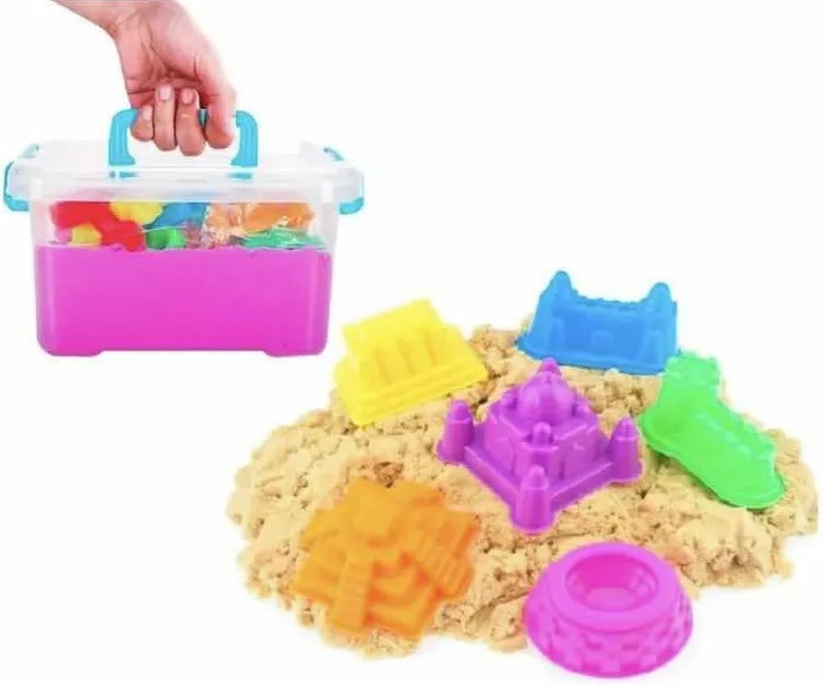 Arena Mágica 1Kg + Caja Contenedora + Moldes Plásticos (Color al Azar)