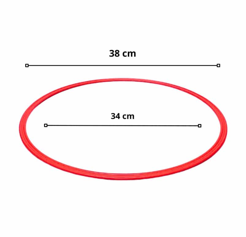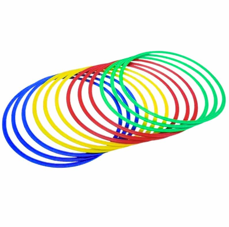 Set de 10 aros de 38 cm de diámetro ideales para juegos y ejercicios que fortalecen la coordinación, el equilibrio y la agilidad de los niños.