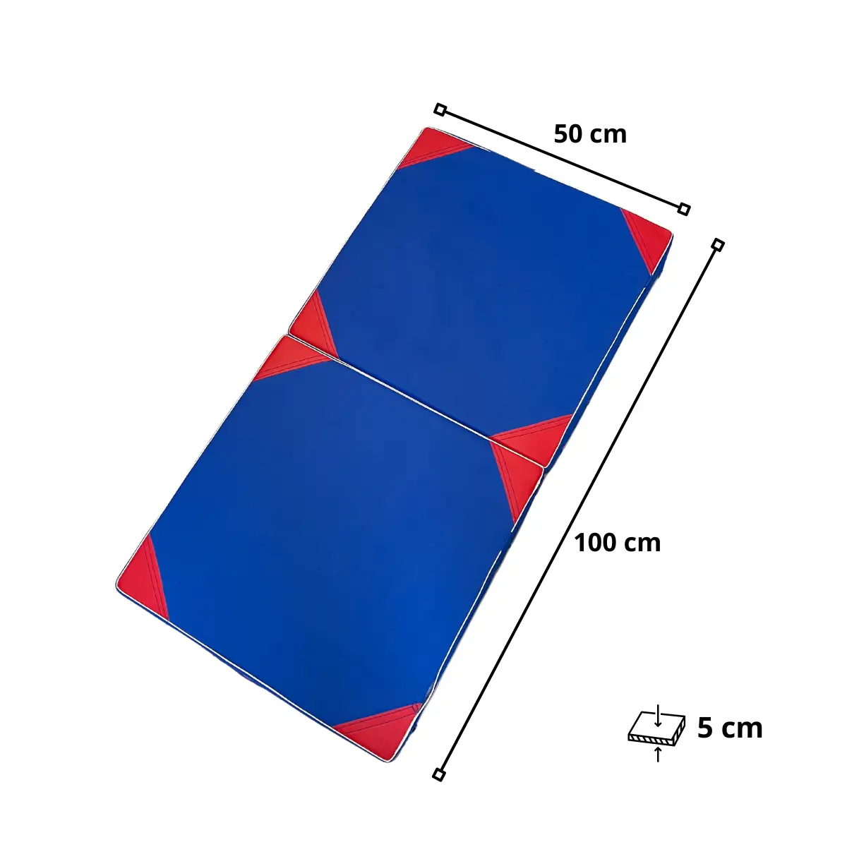 Colchoneta deportiva plegable de 100 x 50 cm con 5 cm de espesor, ideal para entrenamientos funcionales, actividades físicas y ejercicios en el suelo. Fácil de transportar, resistente y cómoda, perfecta para uso en casa, gimnasios, colegios o centros terapéuticos.