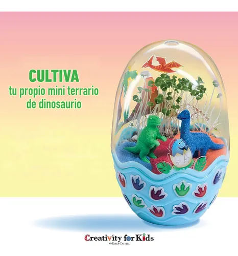 El Mini Garden Dinosaurio de Creativity for Kids – Faber-Castell es un kit creativo que invita a los niños a construir y decorar su propio mini ecosistema con temática de dinosaurios. El set incluye la base, semillas reales de chía que brotan en 3 a 5 días, figuras de dinosaurios y accesorios decorativos.