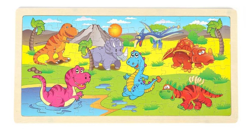 Este puzzle de madera con ilustraciones de dinosaurios es una excelente opción para acompañar el desarrollo temprano de niños y niñas desde los 3 años.